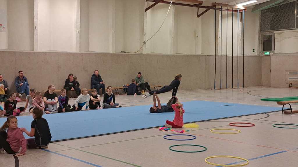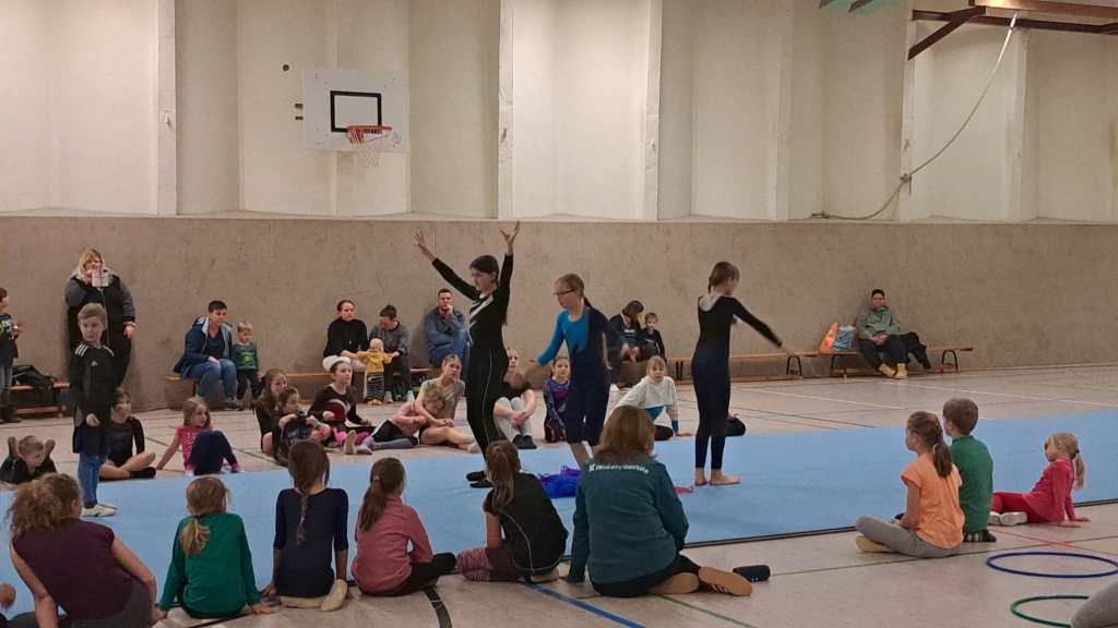 Zuerst gab es Turnvorführungen von allen Gruppen. Dann gab es als Weihnachtsüberraschung T-Shirts und Leckereien. Alle Kinder, Jugendlichen und Gäste hatten viel Spaß mit den Sportgeräten und beim Weihnachtsbasteln mit Simone. Natürlich gab es auch ein leckeres Büfett.