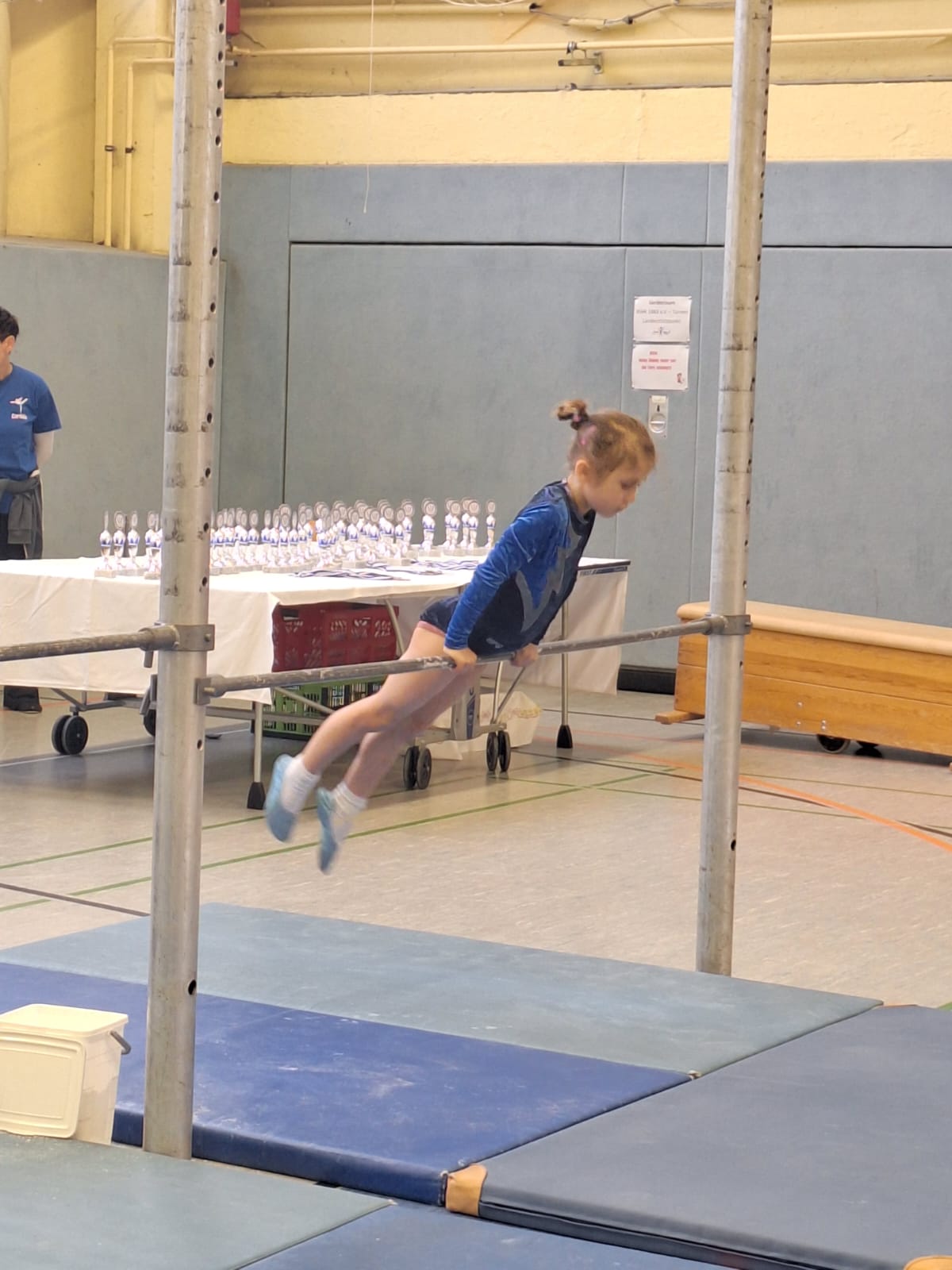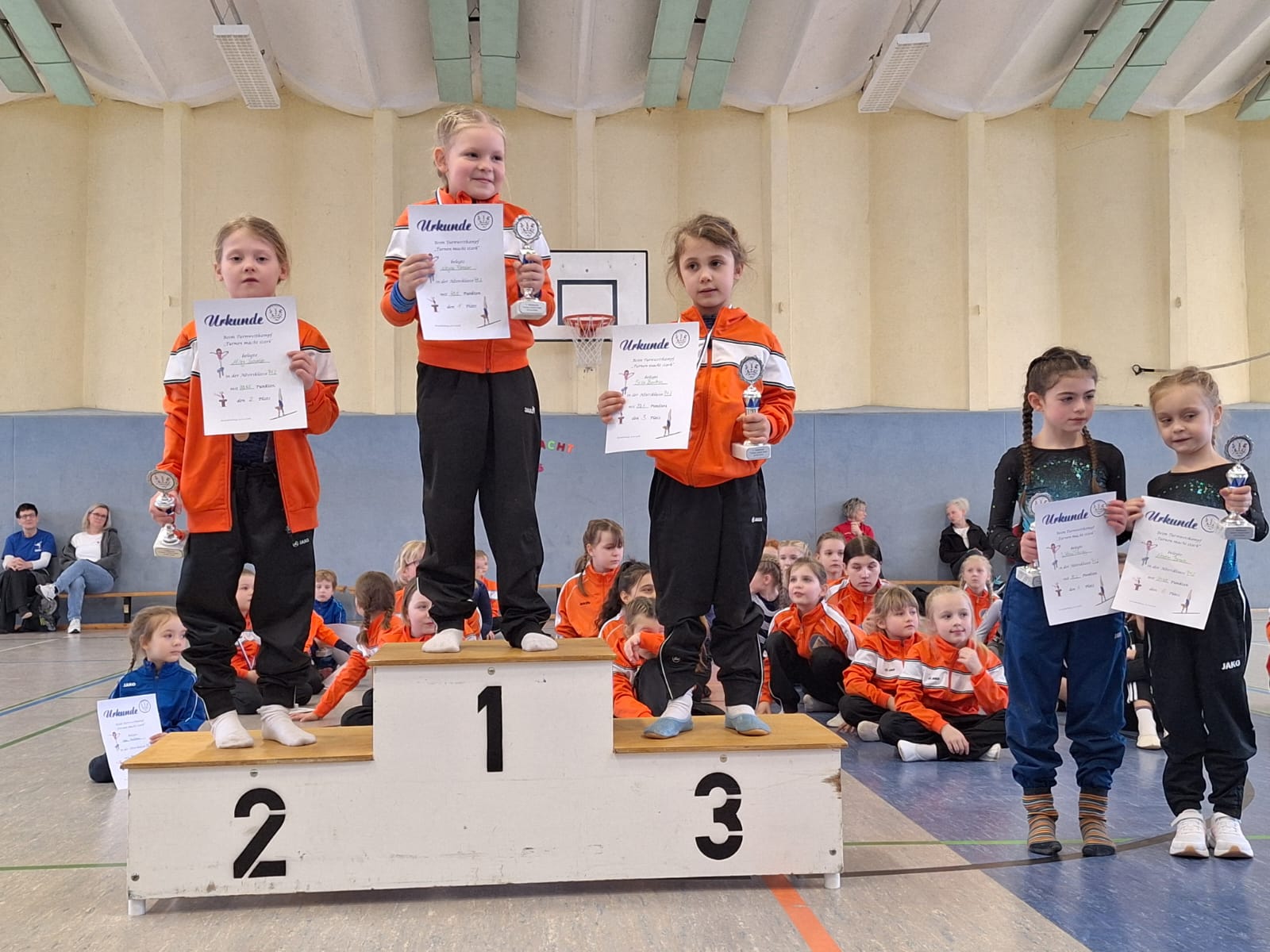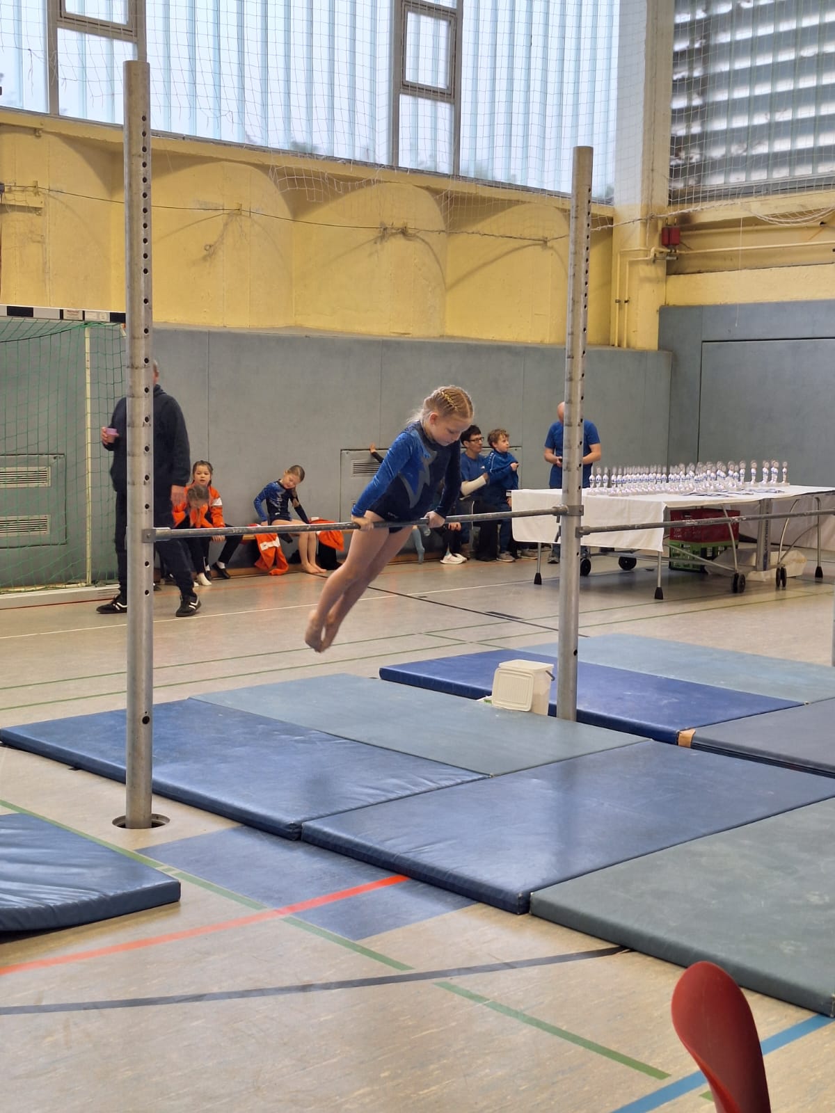 Es trafen sich fast 60 Kinder im Alter von 3 bis 16, um ihre Übungen zu zeigen. Kinder von zwei Rathenower Vereinen waren angereist, zum Glück am ersten Tag ohne Schnee und Eis im Februar. Die Turnkinder wetteiferten um Medaillen und Pokale. Sie turnten Übungen und bewiesen sich in der Athletik.