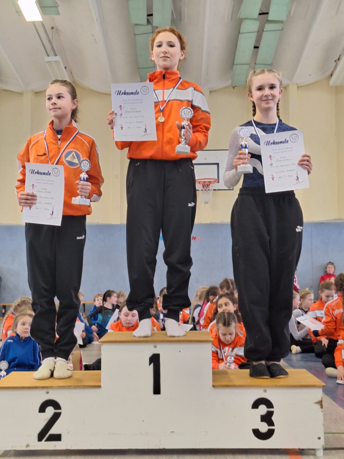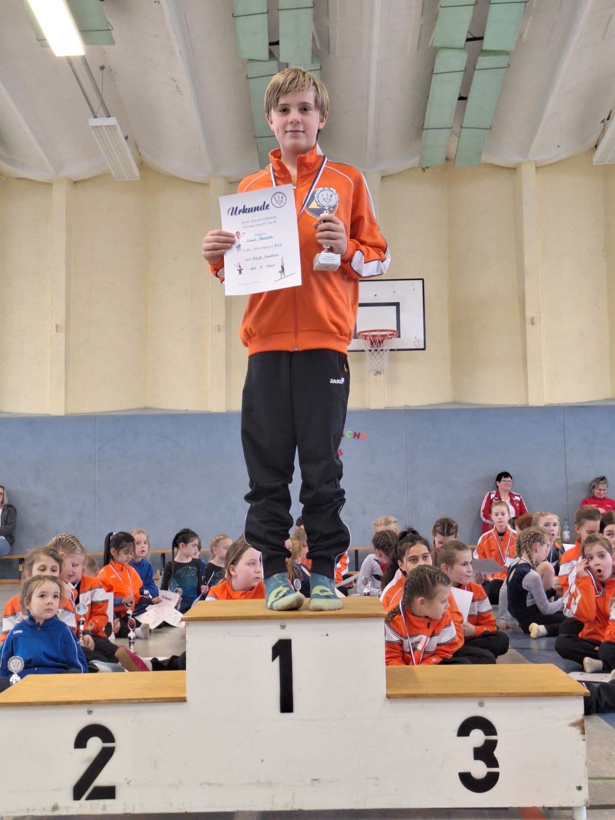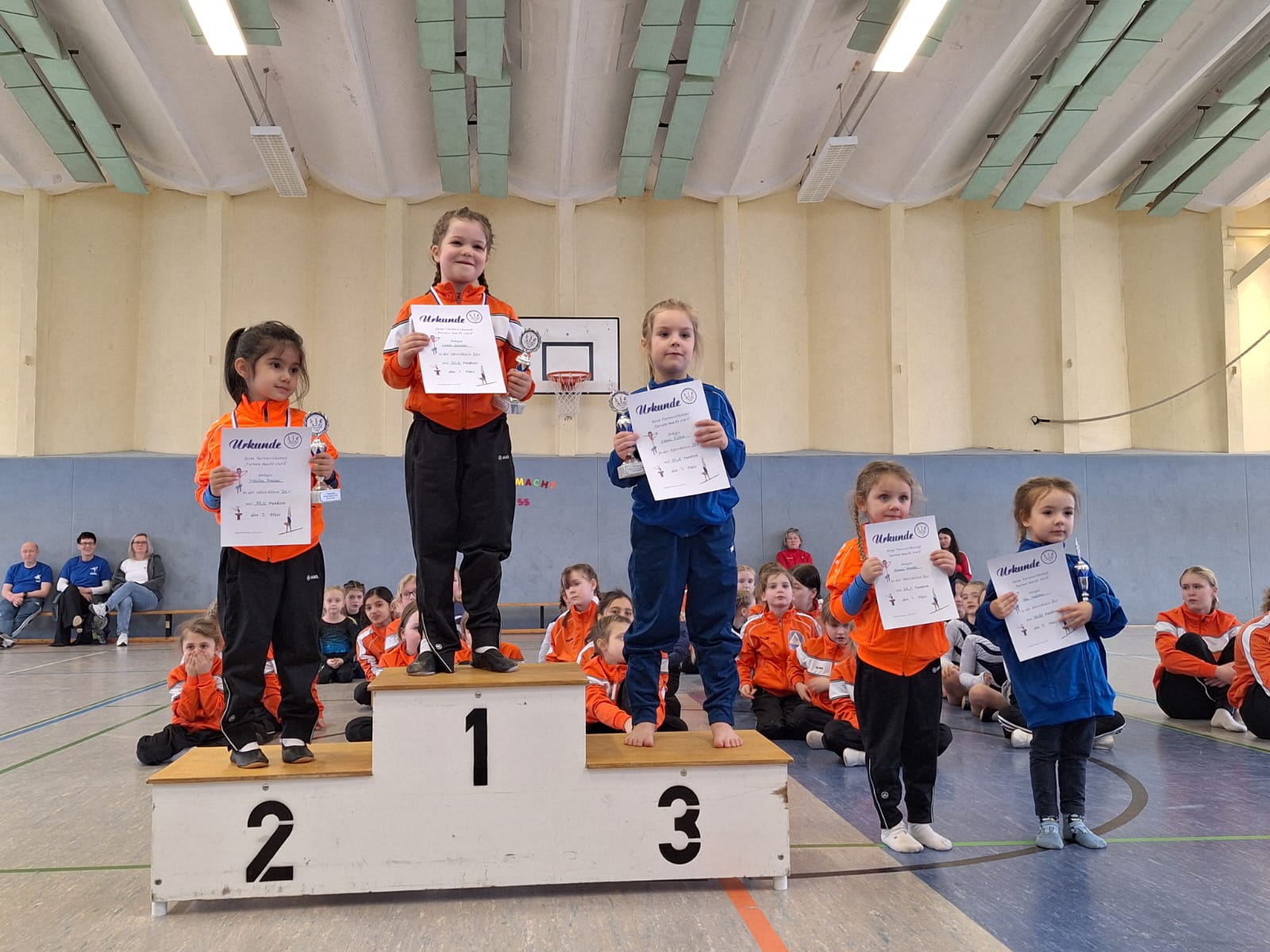 Es trafen sich fast 60 Kinder im Alter von 3 bis 16, um ihre Übungen zu zeigen. Kinder von zwei Rathenower Vereinen waren angereist, zum Glück am ersten Tag ohne Schnee und Eis im Februar. Die Turnkinder wetteiferten um Medaillen und Pokale. Sie turnten Übungen und bewiesen sich in der Athletik.