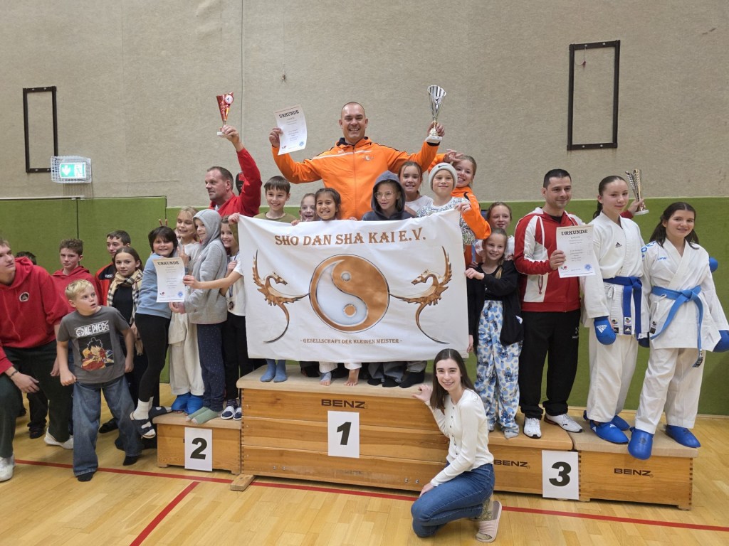 Der Verein Sho Dan Sha Kai e.V. konnte sich im gesamten Wettkampfjahr als erfolgreichster Verein durchsetzen und den 1. Platz in der Gesamtwertung erringen!Die Trainer Marc Puhlmann und Thomas Schulze zeigten sich begeistert über den Erfolg ihrer Schützlinge: